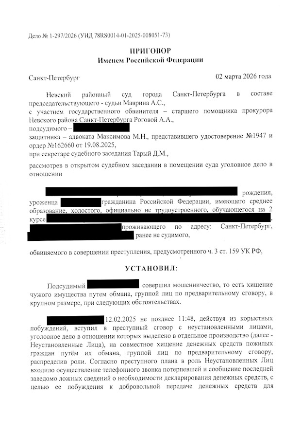 ❓ Мне 19 лет, я забрал деньги у пенсионерки по просьбе «работодателя» из интернета. Что мне грозит?