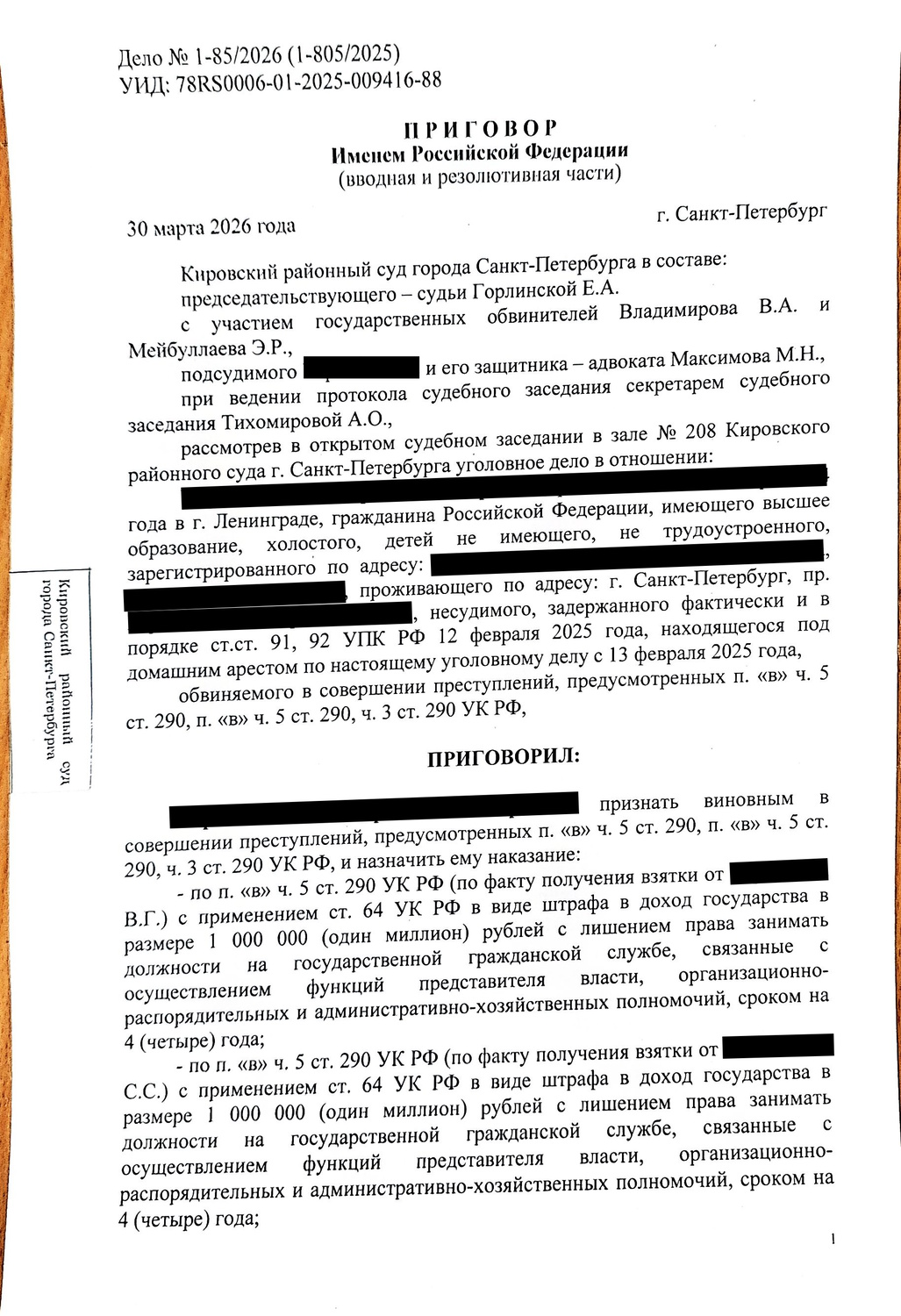 Адвокат по 290 УК РФ Максимов М.Н. делится опытом защиты по сложному уголовному делу о получении взятки должностным лицом в крупном размере. Ключевой результат: несмотря на тяжесть инкриминируемого деяния, подзащитному назначено наказание в виде штрафа, тогда как по подобным статьям суды в подавляющем большинстве случаев назначают реальное лишение свободы.